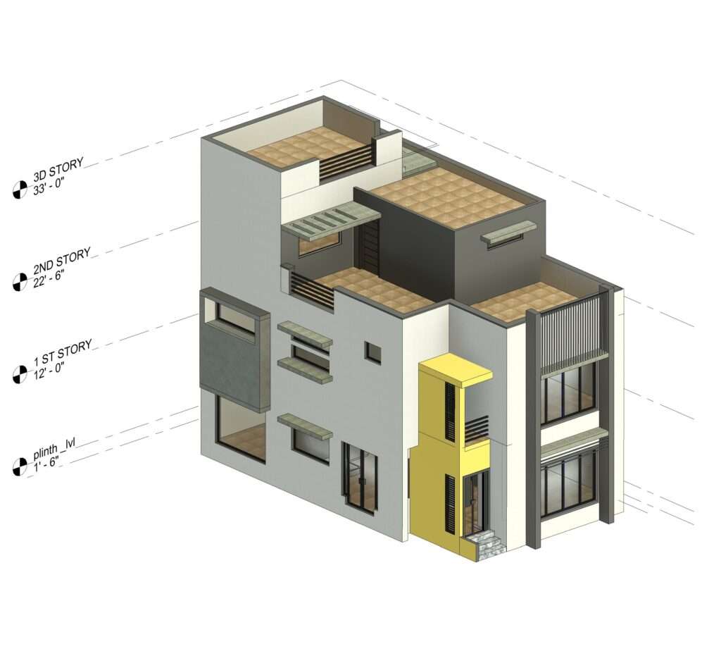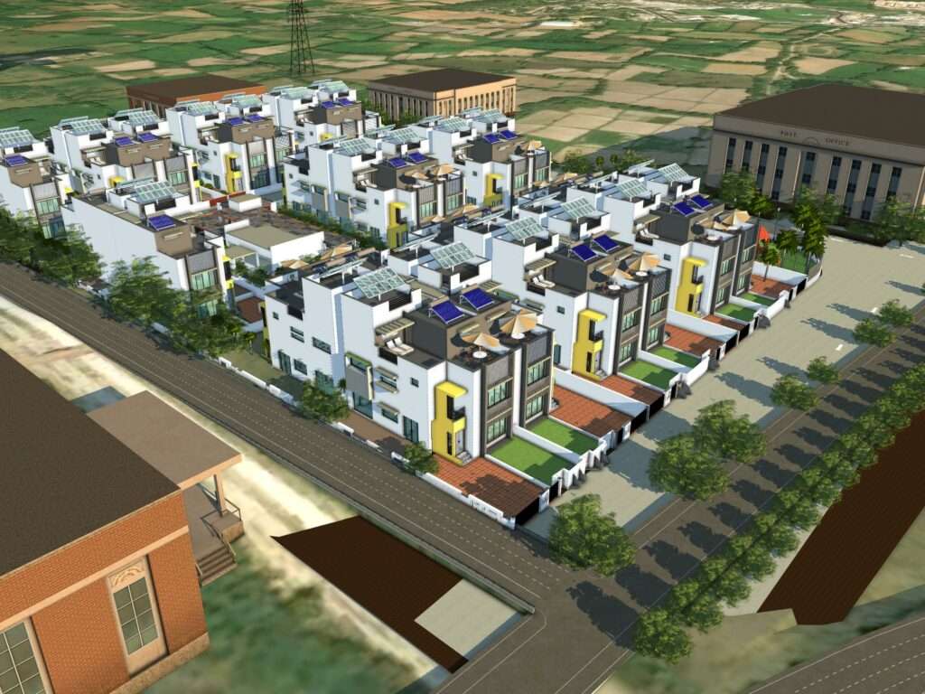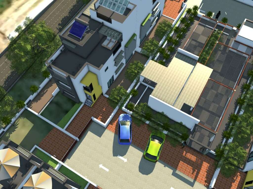 9. Arrangement of all buildings with the proper position after watch 3d in Revit model common plot change for better design.